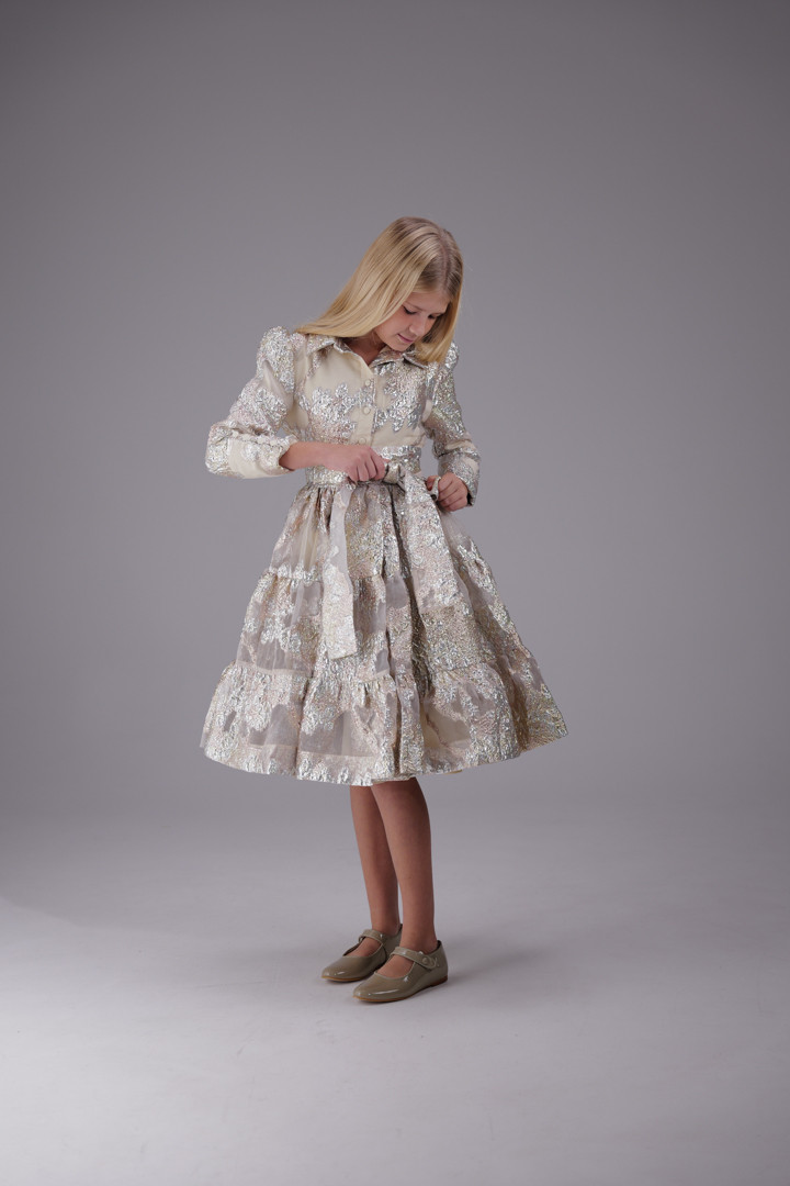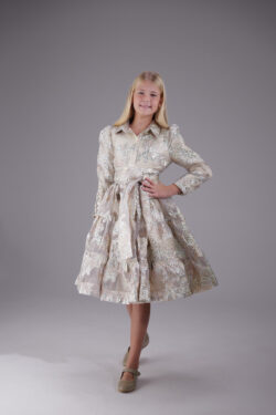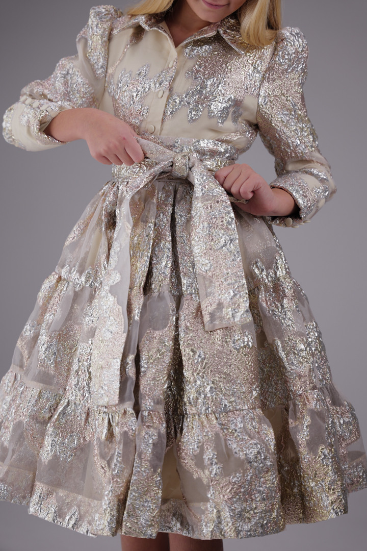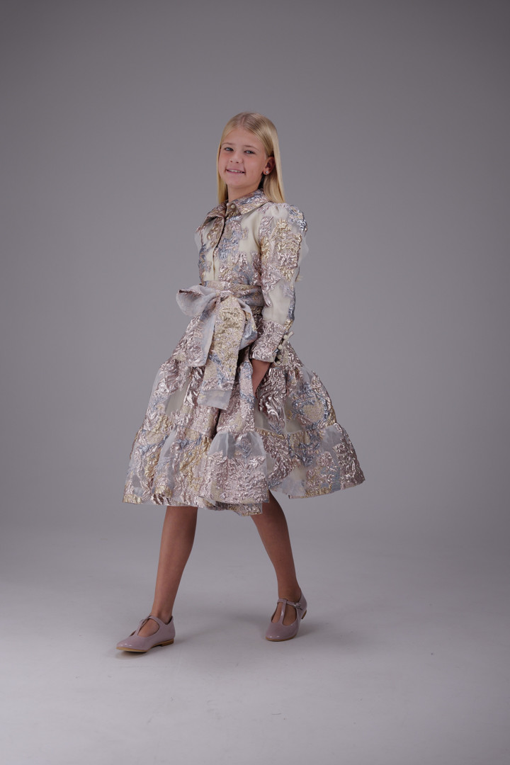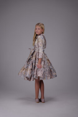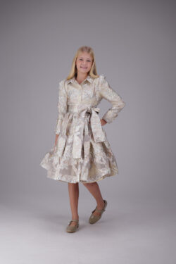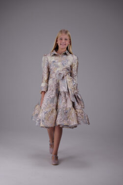שמלה מושלמת מבד ברוקד עשיר ואלגנטי, בגזרה שיקית שתופסת את העין.