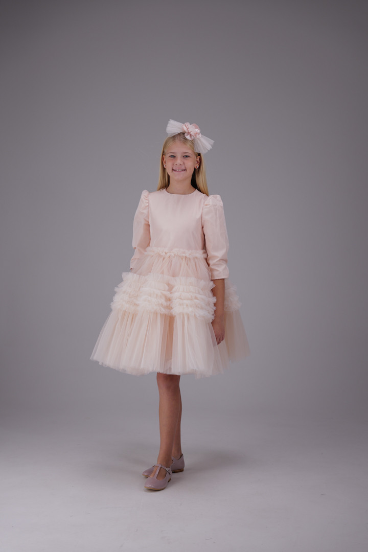 בגב – חגורה אלגנטית עם פפיון מושלם שסוגר את הלוק בנגיעה נסיכותית מעודנת.