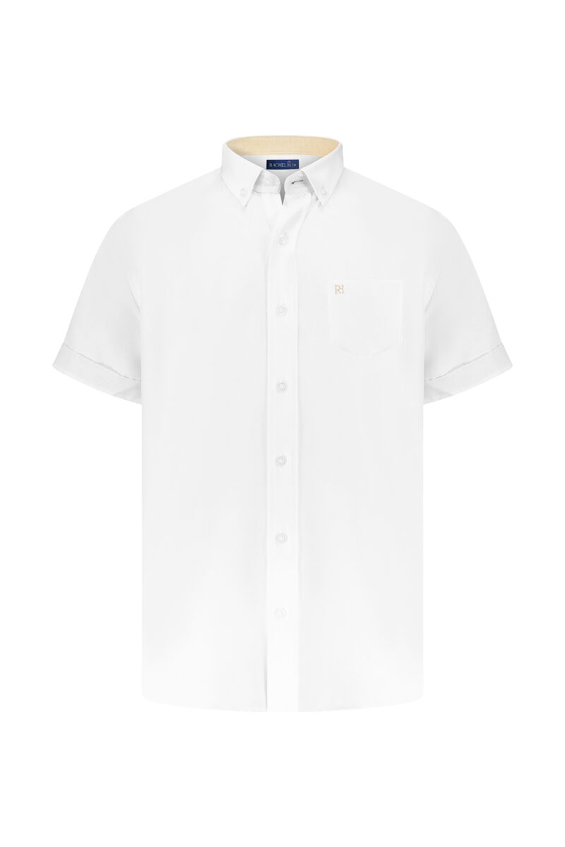 חולצה צווארון סיני שרוול קצר , לבן